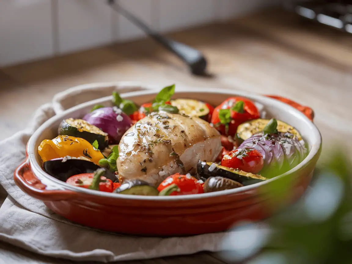 היופי במנה הזו שכל ירק נצלה בנפרד והעוף נשאר עסיסי – התוצאה מושלמת, חגיגה של צבעים וטעמים. כל אחד יכול להכניס את הירקות שהוא הכי אוהב, ובעונה הקרירה החום של התנור עוטף את הבית בריח נוסטלגי שכל כך מזכיר לי את ילדותי. המתכון פשוט להכנה, ותמיד מקבל מחמאות בכל הגשה. ברגע אחד כולם מתקרבים לשולחן, מנסים לנחש מהו כל ירק, ומחייכים בהנאה.