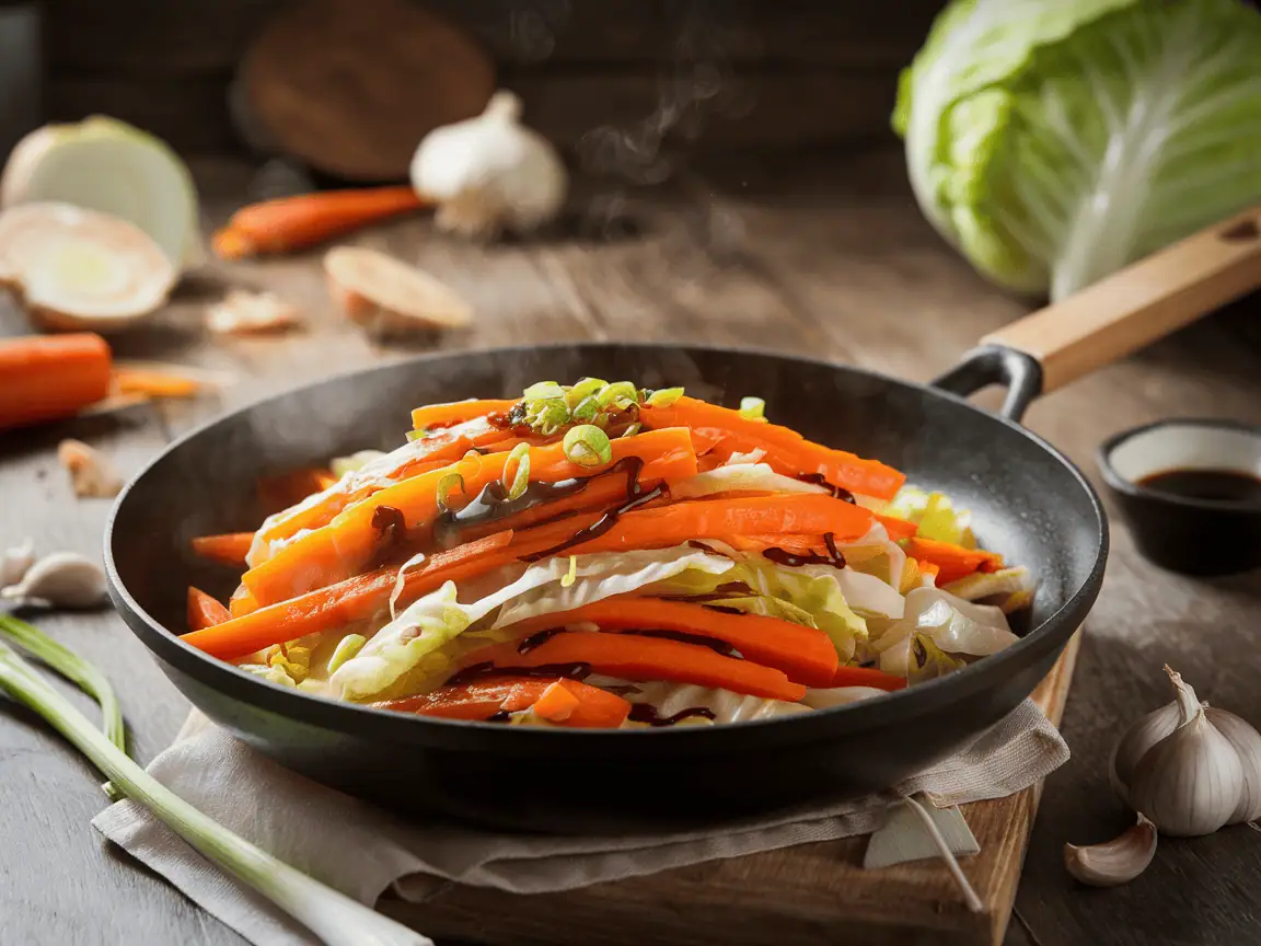 המתכון הזה הוא מופת של בישול ביתי מסורתי, אפילו אם זה נשמע פשוט. גם אחרי שנים של התנסות, אני לא מוותרת על השילוב הנפלא של מתוק מהגזר, רעננות מהכרוב, והקפצה זריזה שמנציחה זיכרונות משפחתיים של התכנסות סביב שולחן. היום אני מזמינה אתכם להכין יחד איתי מוקפץ גזר וכרוב ריחני, מלא טעם, בריא ומזין – בדיוק איך שאהבנו בילדות, ובעיקר איך שסבתא הייתה מכינה – בלי קיצורי דרך ועם המון אהבה.