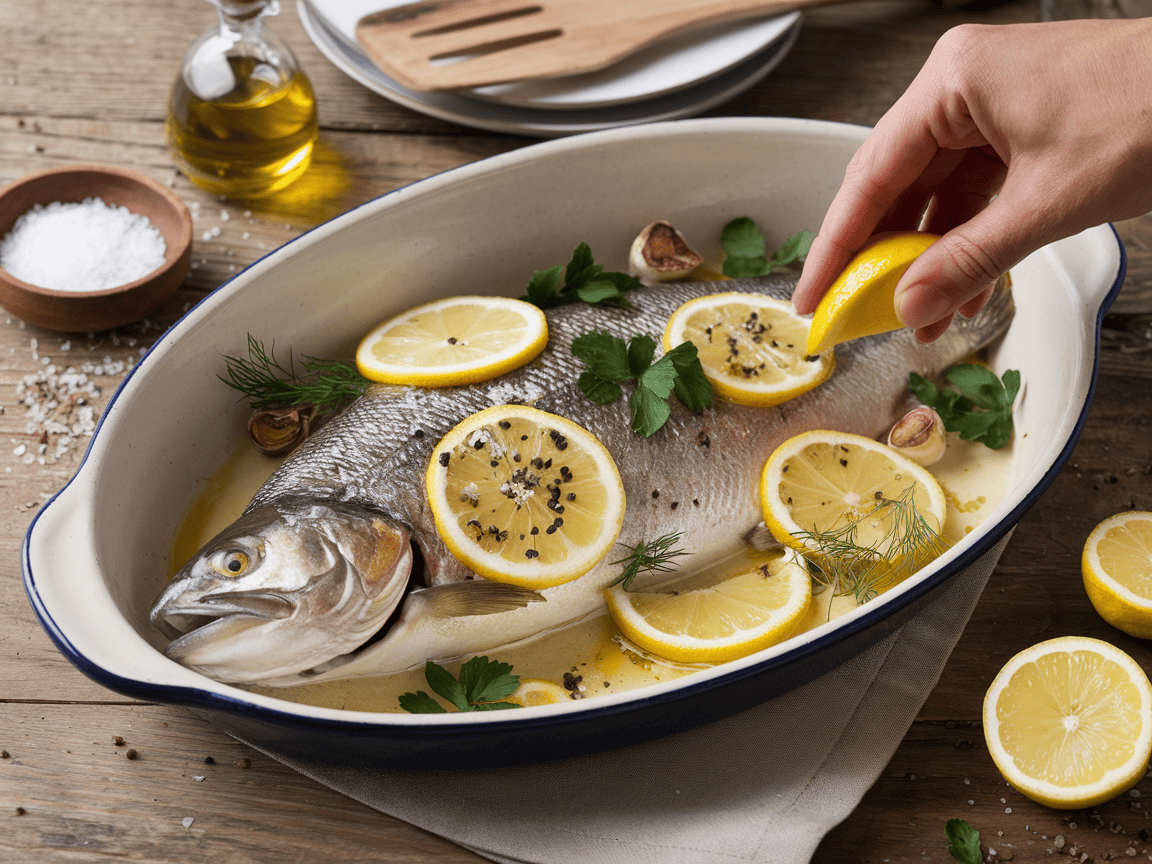 - אופציית גריל: משמנים קלות את הרשת. צולים דג שלם 7–8 דקות לכל צד, עד עור פריך וריח לימוני מדהים.