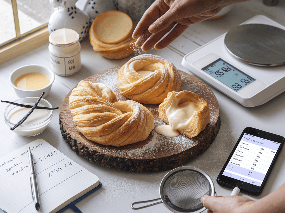 הריח שממלא את המטבח בעת האפייה משקר לנו קצת: עלים נפוחים וניחוח וניל עדין מרגישים “קלילים”. בפועל זו שכבת בצק דקה שנושאת הרבה שומן, ועוד קרם שמוסיף סוכר. לכן המדידה לפי משקל וקריאת תווית רכיבים הן החברים הכי טובים שלנו לפני הביס הראשון.